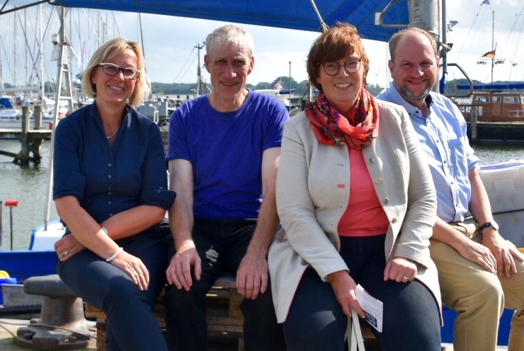 Im Netzschuppen im Fischereihafen begrüßte Fischer Olaf Jensen als Organisator beim anschließenden Treffen unter anderem die NDR Landpartie-Moderatorin Heike Götz, Ex-Ministerpräsident Peter Harry Carstensen, Schleswig-Holsteins Justiz- und Europaministerin Dr. Sabine Sütterlin-Waack, die Bundestagsabgeordnete Petra Nicolaisen und den Landtagsabgeordneten Johannes Callsen.