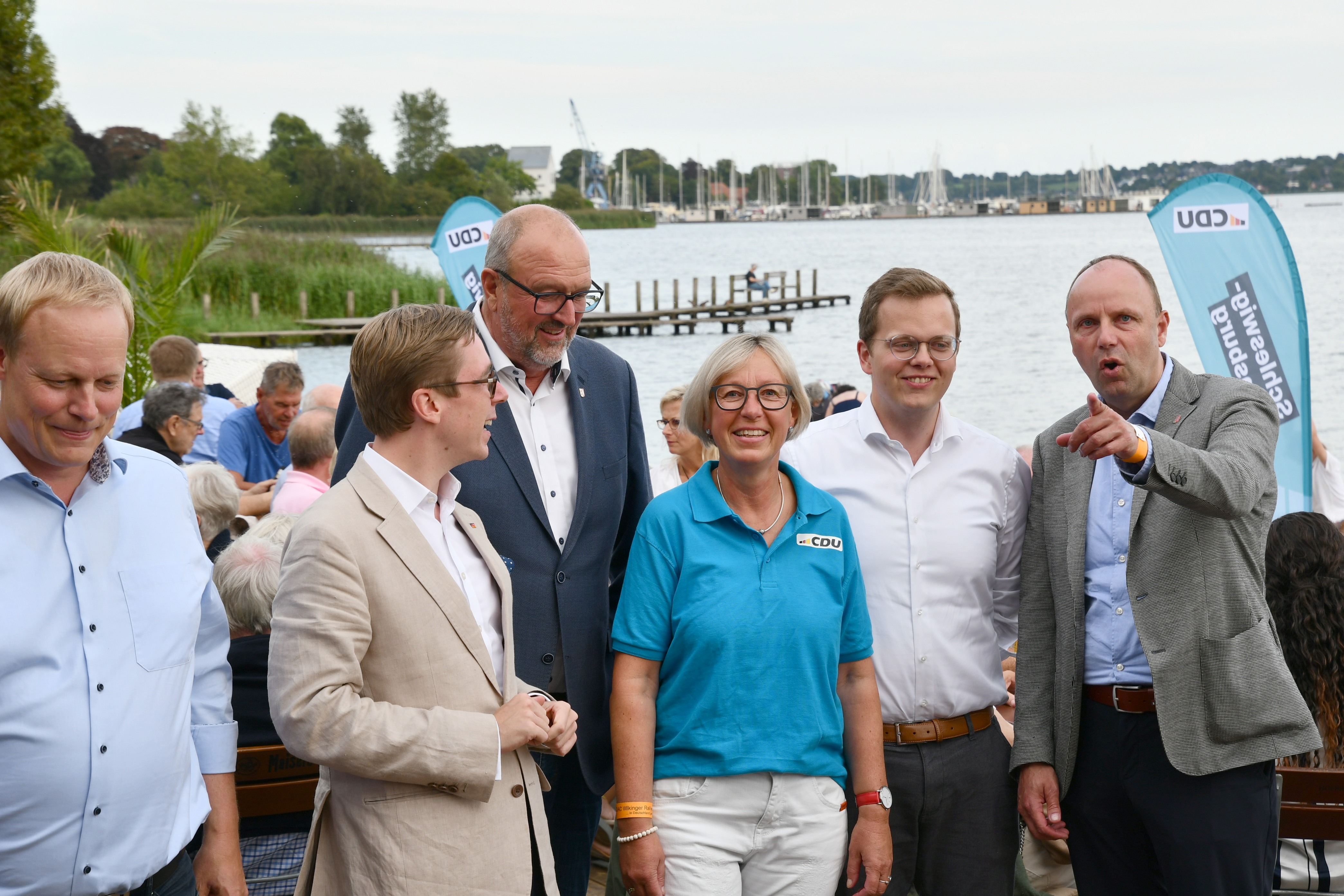 Ebenso gut gelaunt stellte Nicolaisens Bundestagskollege aus Mecklenburg-Vorpommern fest, dass es in Schleswig sehr schön sei. Er könne deshalb gar nicht verstehen, dass „die Leute Robert Habeck wählen“ würden. „Wir werden gemeinsam daran arbeiten, dass sich das ändert“, sagte Amthor zu Nicolaisen, „dann gehört die Schleistadt tatsächlich bald zum schönsten Wahlkreis in Deutschland.“