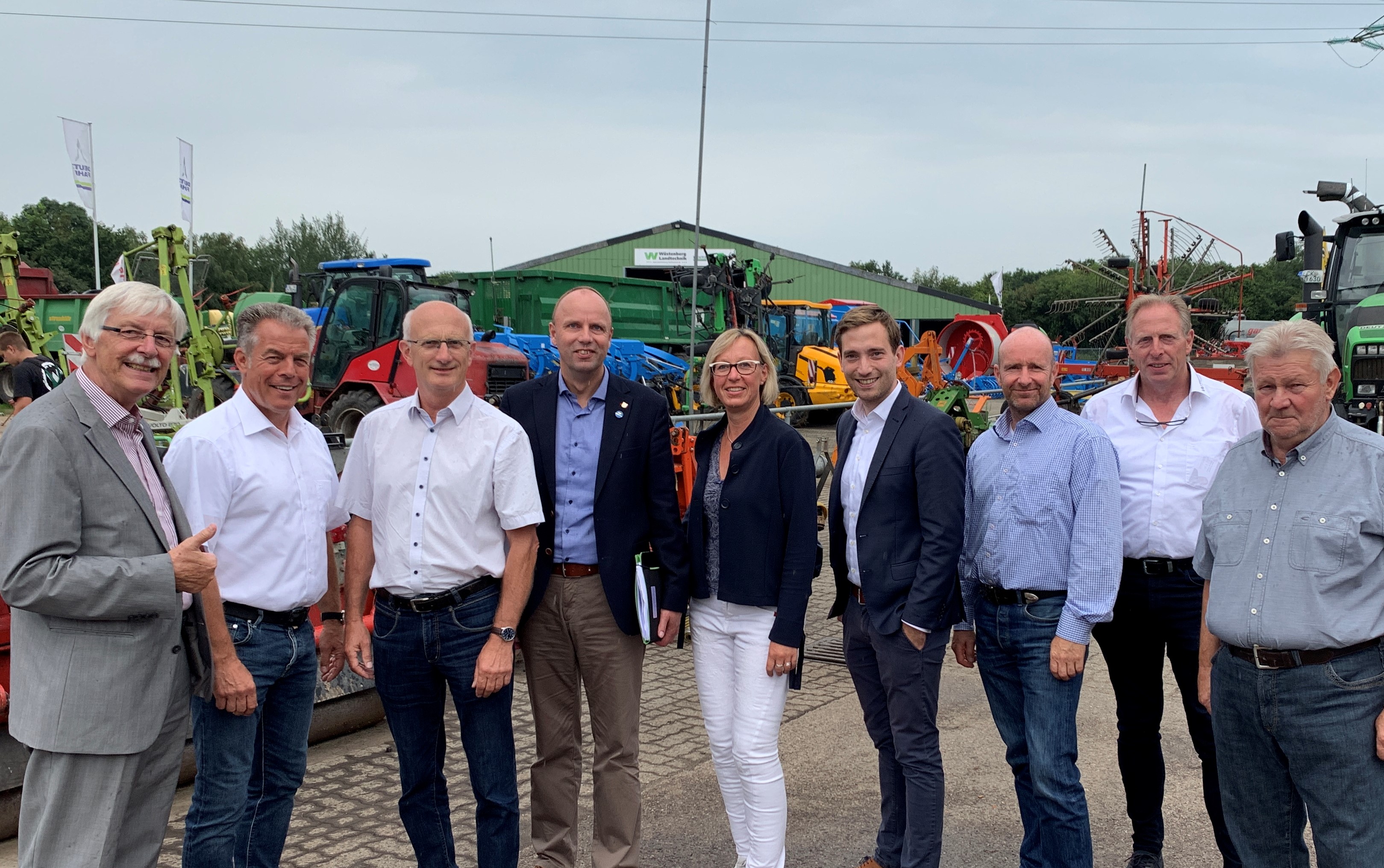 In Börm schließlich ging es bei einem Besuch der Firma Wüstenberg Landtechnik um die mittlerweile acht Standorte mit ihren 260 Mitarbeitern in Schleswig-Holstein und Mecklenburg-Vorpommern. Erstaunt zeigten sich der Abgeordneten von der Betriebsgröße der Firma im beschaulichen Börm, wo die Geschäftsführer Holger Wüstenberg und Hans-R. Lübcker über das Betriebsgelände führten und über ihre Verkaufs- und Vermietungsaktivitäten berichteten aber auch ihren Reparaturbetrieb vorstellten. „Mit einer fast 100-jährigen Firmengeschichte ist Wüstenberg mittlerweile ein unverzichtbarer Partner in der Landwirtschaft – und nach wir vor ein Familienbetrieb“, so Andreas Hein