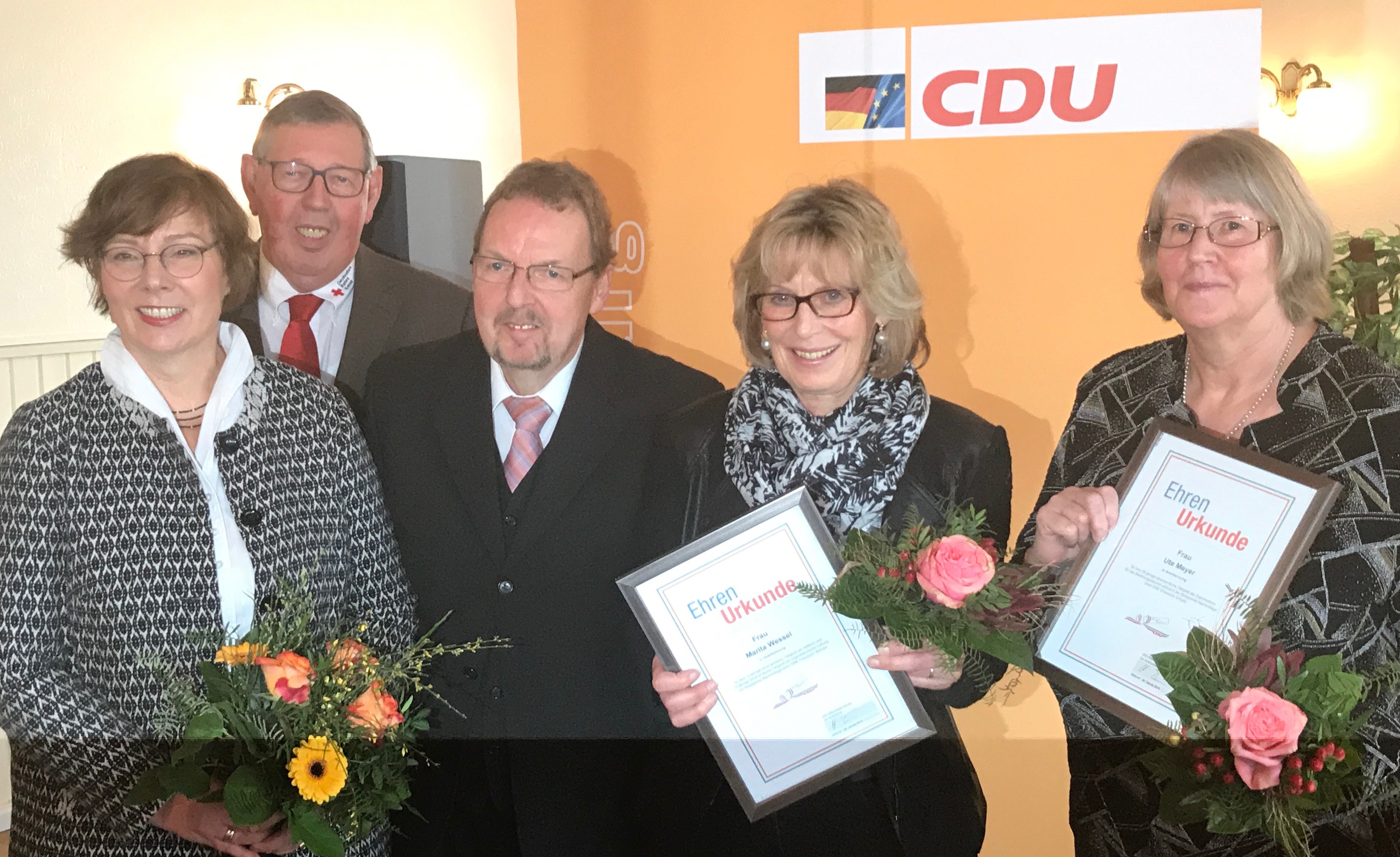 Bereits zum 24. Mal ehrte die CDU-Schuby verdiente Bürger aus der Gemeinde im Rahmen des Ehrenamtstages. In diesem Jahr hatte sich der Vorstand für die Ehrung vom Ute Meyer und Marita Wessel entschieden, um diese für ihre langjährige Arbeit im Blutspendedienst zu ehren. Im Beisein von DRK-Kreisvorsitzenden Harald Krabbenhöft konnte Ortsvorsitzender Henning Timm die Ehrenurkunden und Blumen überreichen.