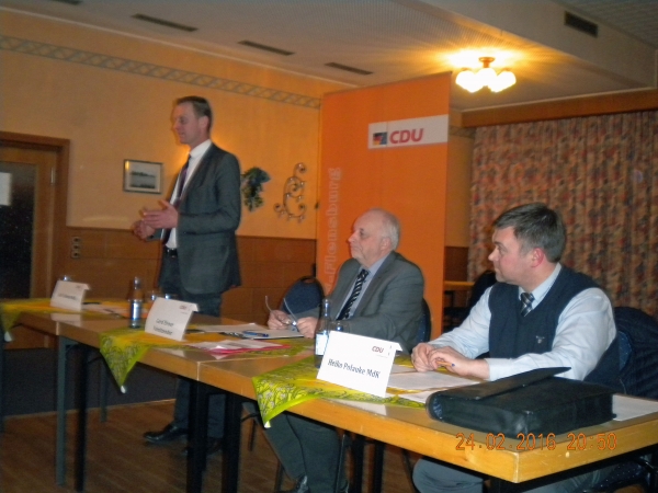 Als weiteren Gast stellte Gerd Hener den Kreistagsabgeordneten Heiko Polauke vor, der den gemeinsamen Wahlkreis von Gemeinde Mittelangeln und Sörup vertritt. Seine Ausführungen motivierten viele Mitglieder zu einer großen Zahl von Fragen. Es ging um seine Rolle als Vertreter des gemeinsamen Wahlkreises, aber auch um Fragen des Straßenbaus und der Breitbandversorgung.