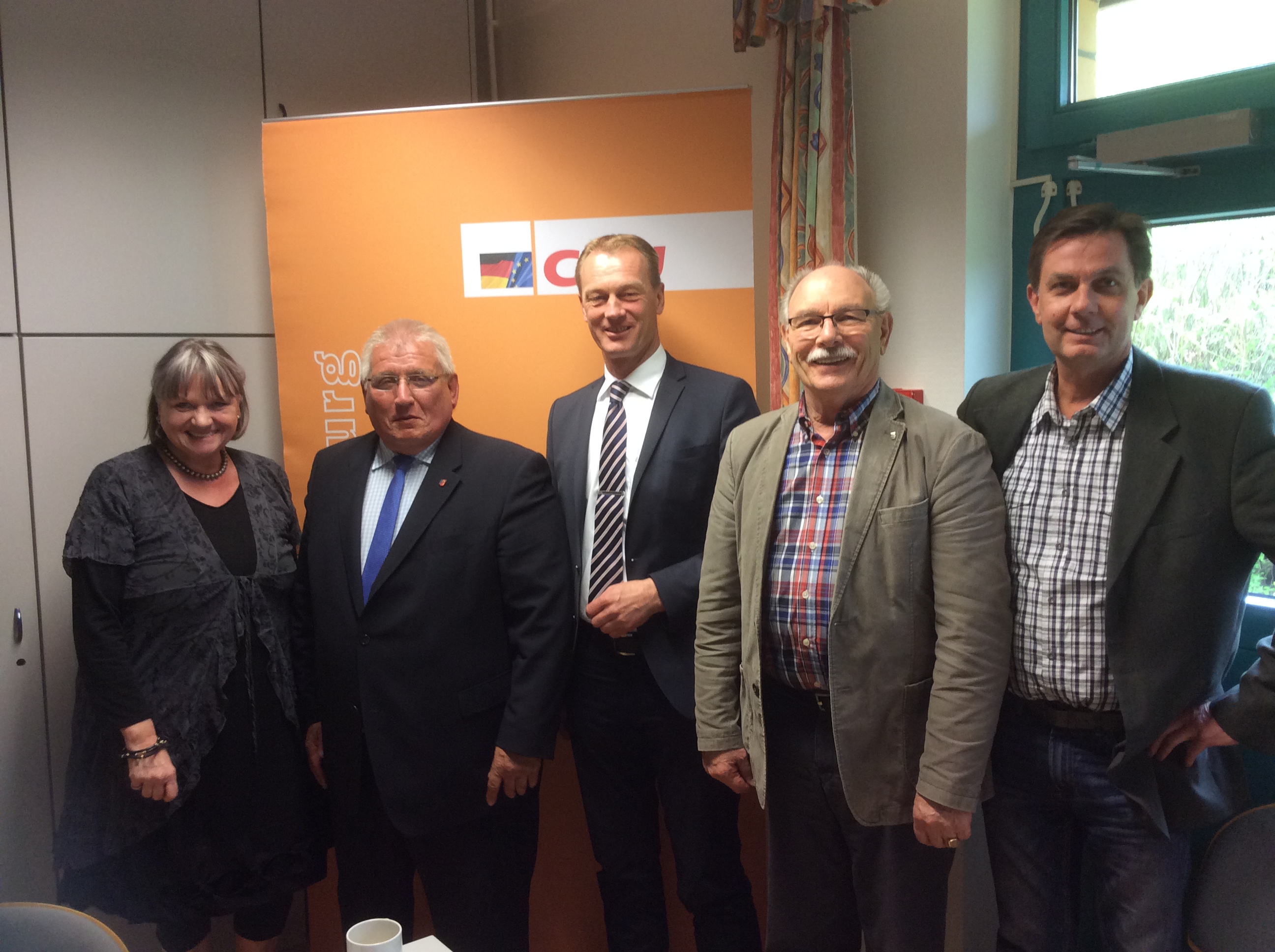 Bei einem Besuch der Dienstleistungsgesellschaft Kappeln überzeugte sich Landtagspräsident Klaus Schlie von der erfolgreichen Arbeit dieses Integrationsbetriebes und lobte die dort praktizierte Integration von Menschen in den Arbeitsmarkt. CDU-Landtagsabgeordneter Johannes Callsen, der Schlie nach Kappeln eingeladen hatte, erinnerte daran, dass Integrationsbetriebe bei der Einführung des Landesmindestlohnes erhebliche Probleme bekommen hätten. Erst durch den Druck der CDU und die guten Argumente der DG Kappeln sei es zu einem Einlenken gekommen, die diesen Integrationsbetrieben ihre weitere erfolgreiche Arbeit ermöglichen. Anschließend ging es auf einer Veranstaltung um das Thema "Innere Sicherheit". Klaus Schlie, für diesen Bereich Mitglied im Kompetenzteam von CDU-Spitzenkandidat Daniel Günther, forderte nicht nur mehr Personal und eine bessere Ausstattung für die Polizei, sondern auch eine stärkere Präsenz in der Fläche. Deshalb werde die CDU die von der Landesregierung beschlossene Schließung von Polizeidienststellen ab 3 Beamte auf den Prüfstand stellen. Außerdem gelte es, den Polizeibeamten bei ihrer wichtigen Arbeit den Rücken zu stärken.