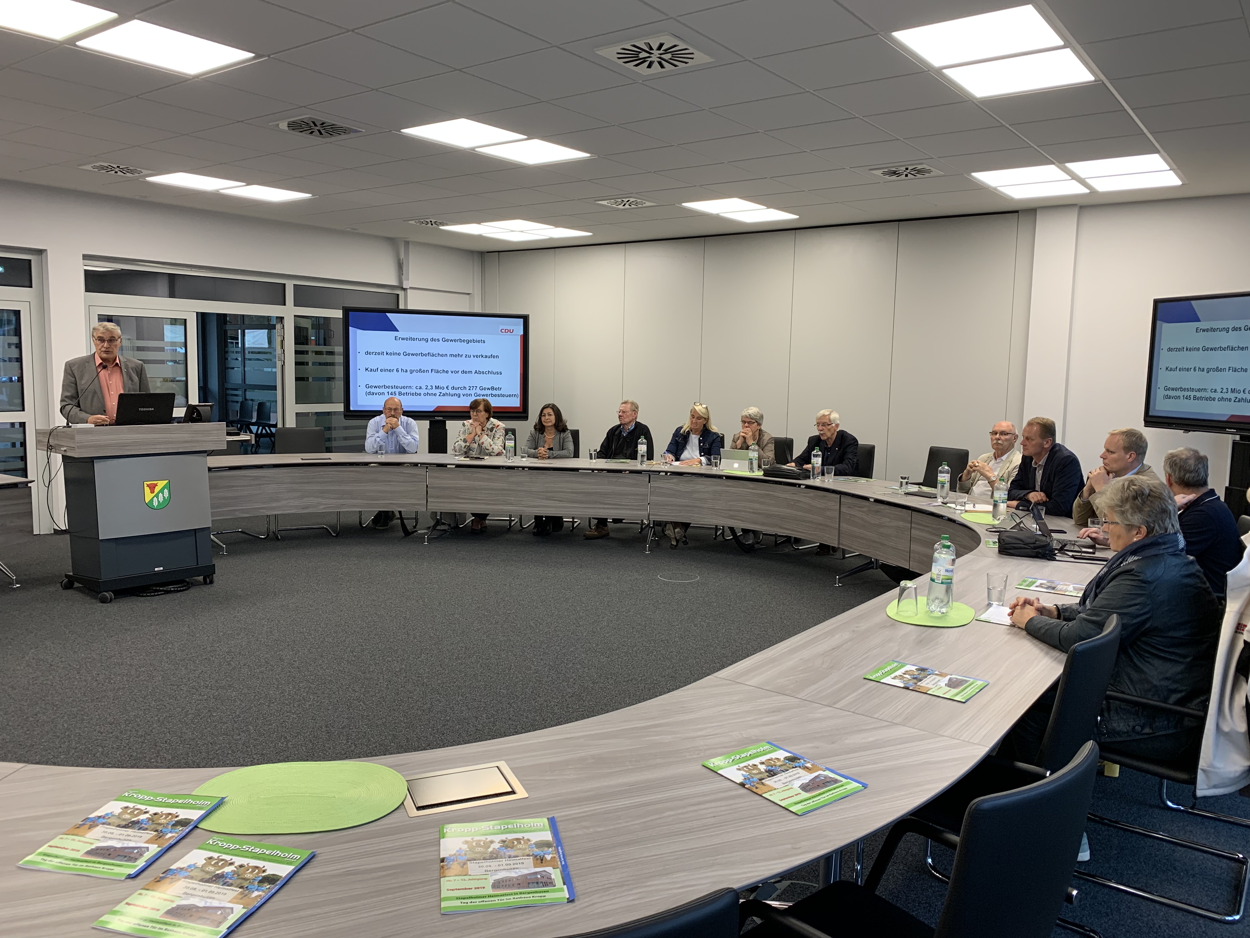 Kreisvorstandssitzung im neuen Kropper Rathaus. Ortsvorsitzender Holger Schwein berichtet über die vielen Aktivitäten der Kropper CDU und der gemeindlichen Entwicklung. Anschließend stellt sich Hülya Hellmanns aus Kappeln dem Kreisvorstand vor, die vor wenigen Tagen zur neuen Vorsitzenden der FrauenUnion gewählt wurde und mit viel Engagement bereits ihre Arbeit aufgenommen hat. Täglich melden sich bei ihr interessierte Frauen, die in der FU mitarbeiten möchten.