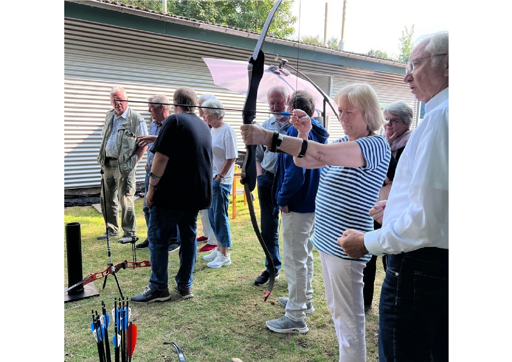 Am Nachmittag stärkten sich die Teilnehmer zunächst bei Kaffee und einem reichhaltigen Kuchenbuffet. Im Anschluss ging es sportlich weiter – entweder im Schießstand, beim Dosenwerfen im Freien oder beim Bogenschießen unter fachkundiger Anleitung.