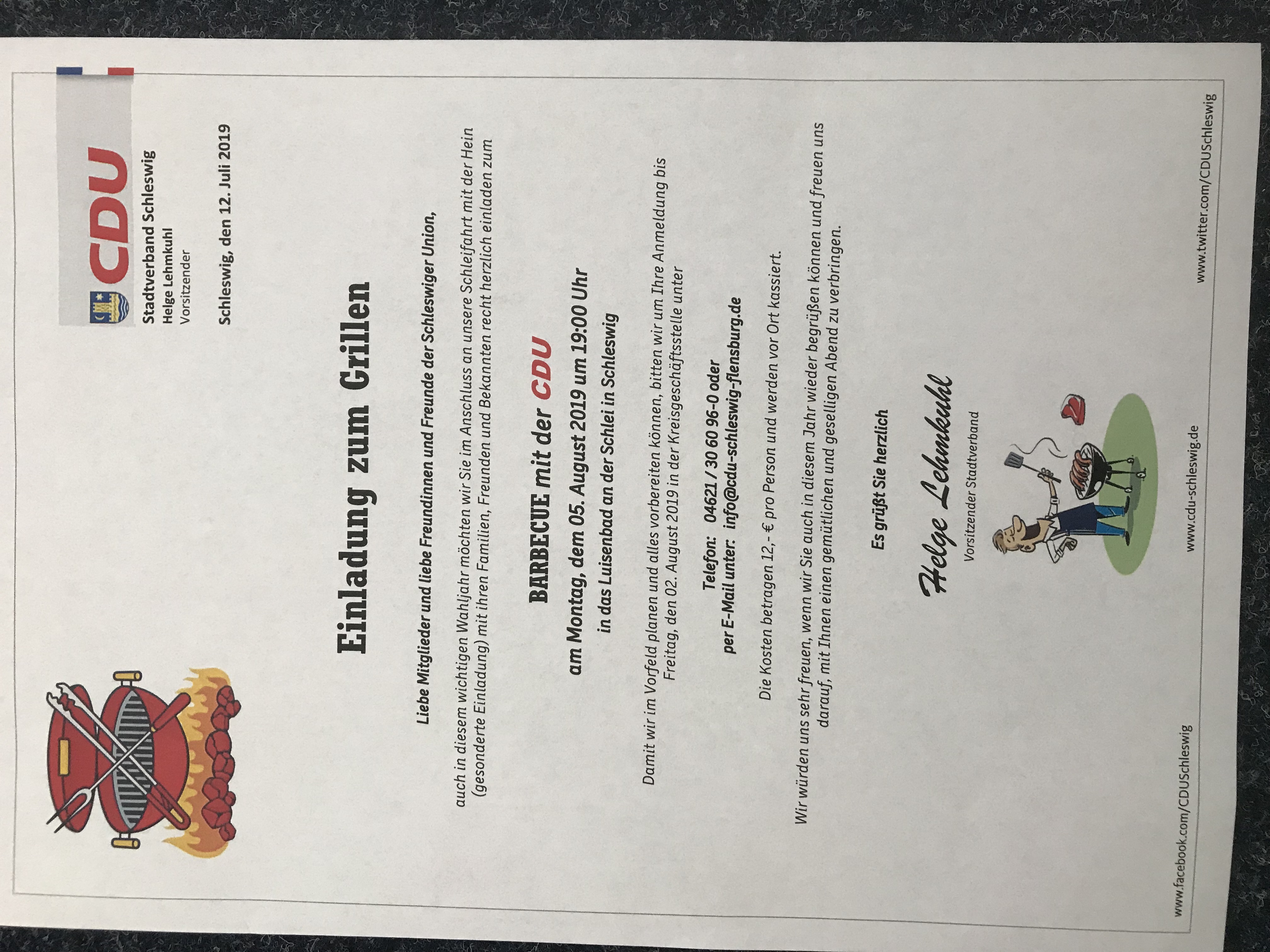 Stadtverband Schleswig: Einladung zum Grillen im Luisenbad